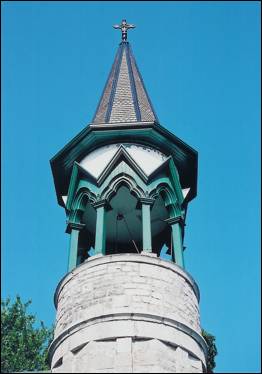 At the south side is the main entrance porch; an elegant bell tower octagonal
