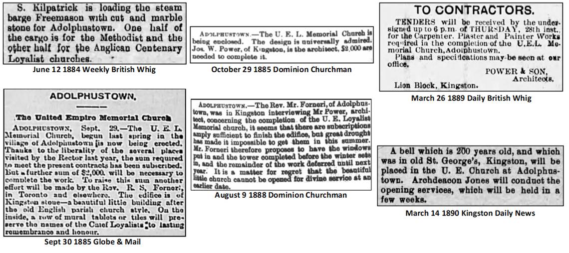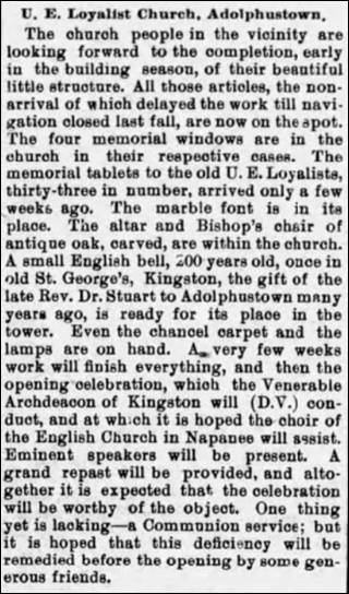 church was laid June 16th, 1884 during the Loyalist