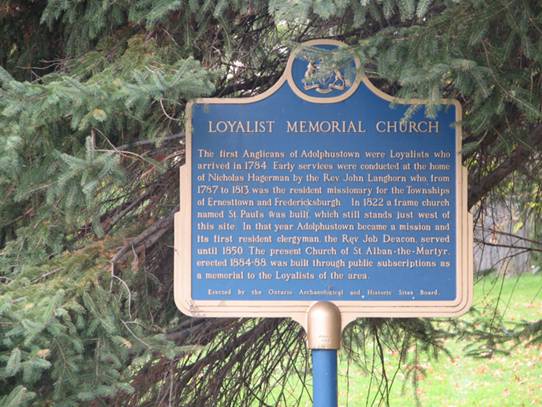 St. Alban’s Anglican Church Adolphustown 10419 Highway 33 at the village of Adolphustown The cornerstone for the