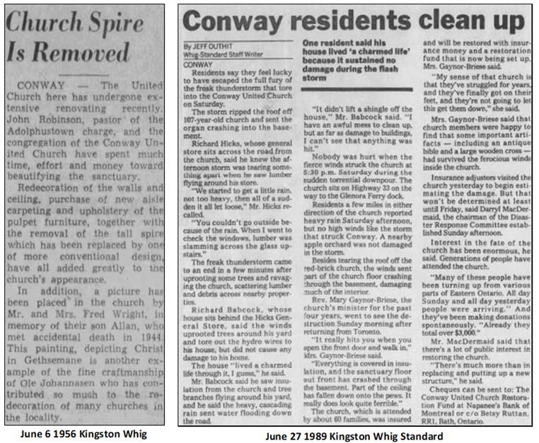 an oil furnace replaced the wood furnaces that had served for many years. On June 24, 1989, a tornado hit the