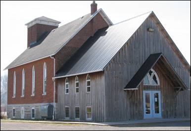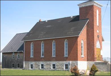 foundation of the red brick church was of stone brought by horse-drawn
