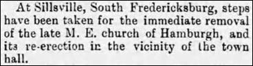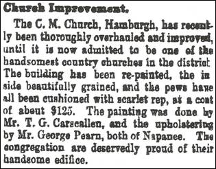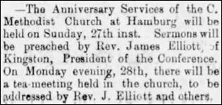by Patrick Miler and being the piece of land upon which a church is now being erected for the Methodist Episcopal Church of Canada. There is very little information available about the church. The frame building, erected in 1869-70, was, in 1890, moved to