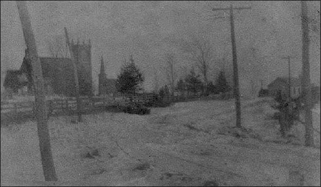 left, St. Paul’s Church in the centre, and St. Paul’s Hall on the right. The ‘new’ road (Highway 33)