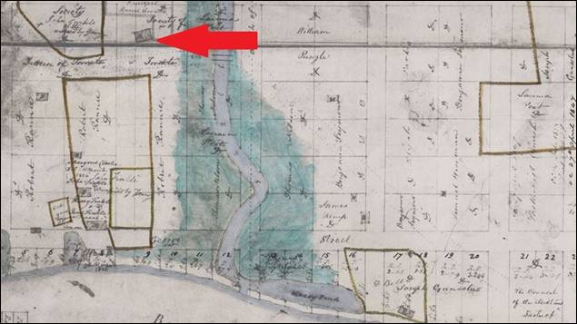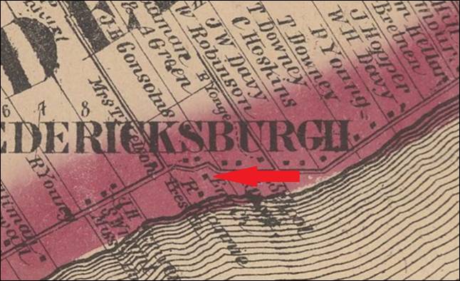 1823 Map of Fredericksburgh Village showing location of St. Paul’s
