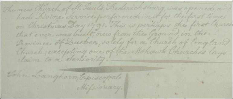 Extract from Rev. John Langhorn’s Register “The new Church of St. Paul’s