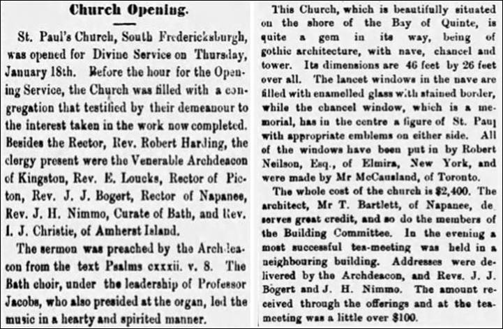 and to edification, Yours truly, One of the old stock. – E. Sills Picton, January 28, 1877” February 8