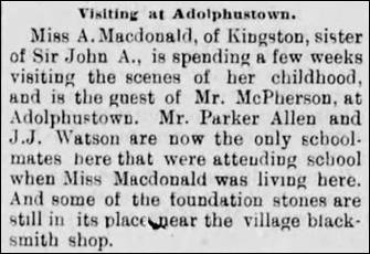 John was at Adolphustown, the guest of the late J.J. Watson, she and her