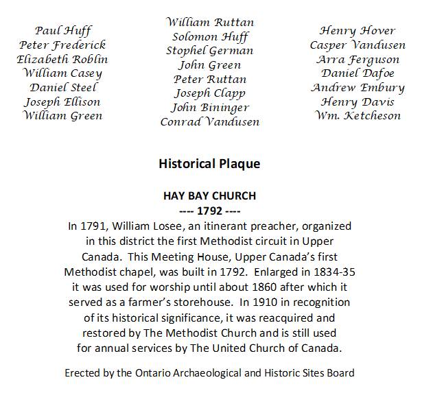 The Old Hay Bay Church Erected 1792 2365 South Shore Road Adolphustown |