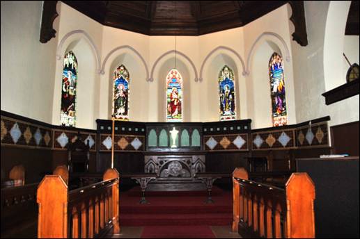The chancel terminates in half a decagon, with a window in each face. The